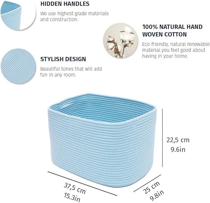 OrganiHaus Blue Basket for Shelves, Decorative Cloth for Organizing, Cotton Rope Storage Basket for Toys, Small Woven Baskets for Storage