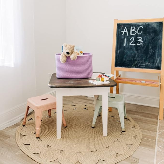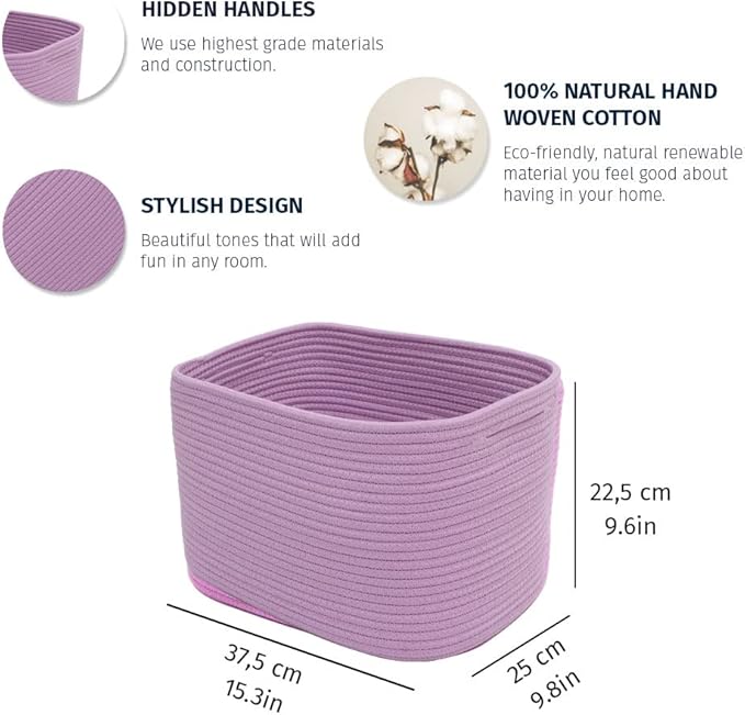 OrganiHaus Purple Basket for Shelves, Decorative Cloth for Organizing, Cotton Rope Storage Basket for Toys, Small Woven Baskets for Storage