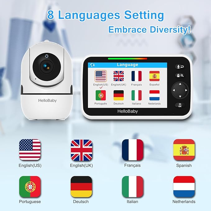 - Smart Baby Monitor Features: The crystal clear Two-Way Audio feature allows conversation both ends as clear as if you were in the same room with your little one. Room Temperature Monitor and Alert, Night vision, 8 Lullabies, Sound Level LED Indicator, Audio only Saving Power Mode, Tabletop or Wall Mounting Options, Multi-Camera Expandability (up to 4 cameras), Date/Time on the Screen, ideal for baby register, baby shower, new parent.