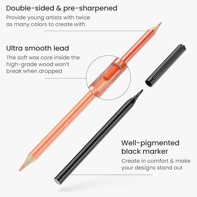 - Set Includes 12 Double-Ended Colored Pencils: Our doodle book also includes colored pencils for kids, one pencil sharpener, one eraser, and one black marker.