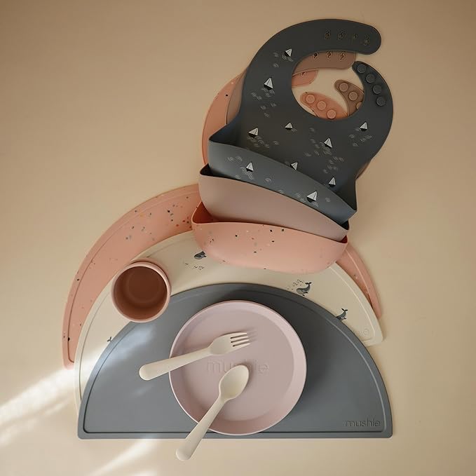 - Keep your little one feeling comfy and clean with our fun-loving collection of silicone bibs. Designed in Sweden, mushie bibs feature classic patterns capturing a look that's both timeless and elegant. Our timeless colors and patterns pair well with mushie silicone placemats, splat mats and tableware.
