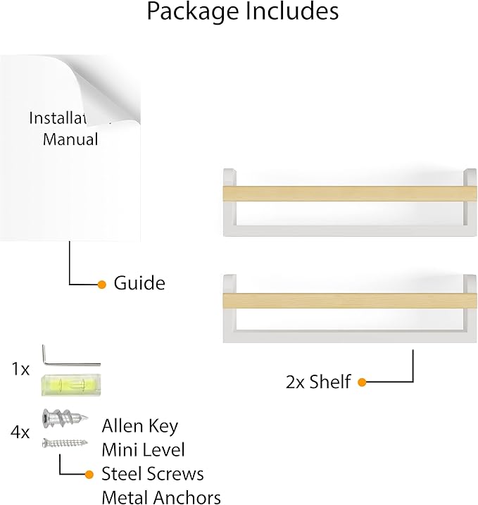 - Safe and Functional: Built with a safety rail, these shelves securely display books, frames, and small decor items.