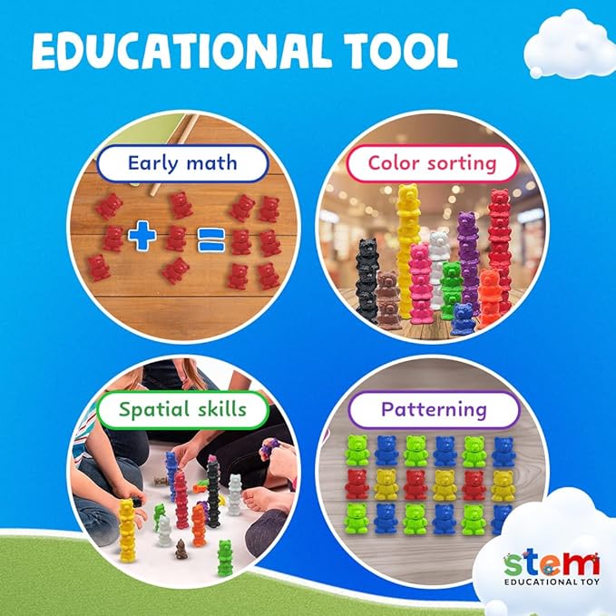 - TODDLER LEARNING TOYS: These counting bears can be used as early learning resources for counting and color sorting to stimulate learning. Ideal for toddler games and toddler learning activities. The sorting bears make great STEM educational math manipulatives for preschoolers and Montessori materials toy with color sorting & counting activities. Use for daycare or homeschool supplies for toddler activities, fine motor skill activities for preschoolers or as Montessori toys for toddlers