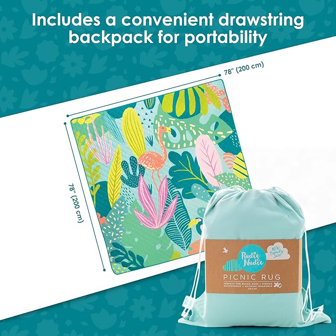 - Jumbo size for family fun: Measuring a generous 78” x 78” (200 x 200 cm), the picnic blanket offers ample space for the entire family to relax and enjoy. This extra large outdoor picnic blanket is ideal for group picnics, beach days, or any outdoor activity needing a large, comfortable seating area.