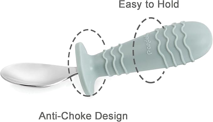 PandaEar 4 Set Baby Toddler Silicone Stainless Steel Utensils Silverware Spoon Fork for Baby Toddler BPA Free with Silicone Holding Anti-Choke Design