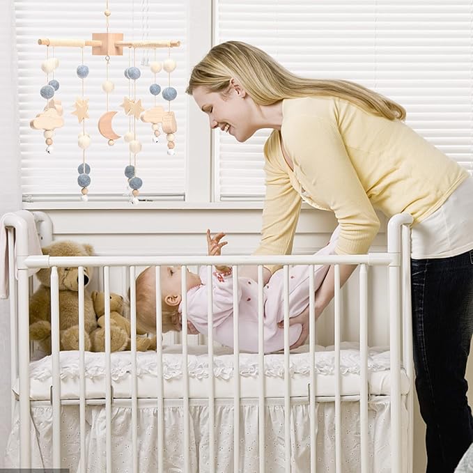 Baby Mobile for Crib | Baby Crib Nursery Mobile Star Moon for Baby Boys and Girls | Boho Nursery Decor | Baby Shower Set for Infant Bedroom Hanging Decoration Toy