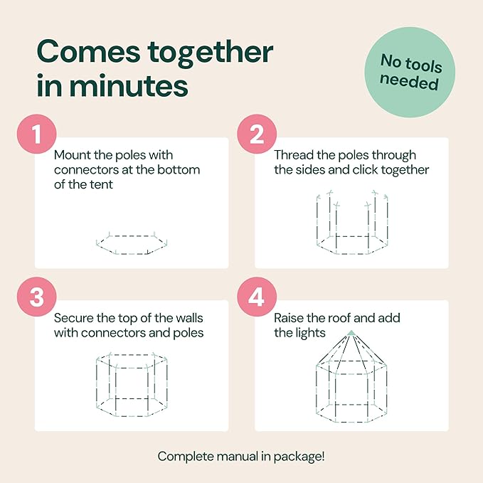 - Magical Exploration: The PLAYVIBE Princess Tent, featuring enchanting LED star lights, creates a vibrant and secure space for kids' exploration. Girls will delight in their own princess tent, nurturing creativity and imagination