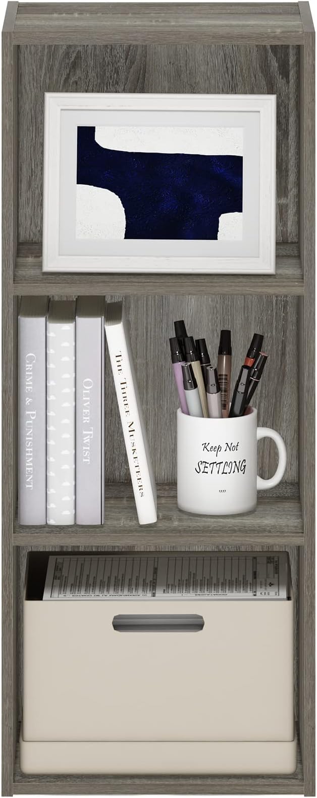 Furinno Luder Bookcase / Book / Storage , 3-Tier, Frenck Oak