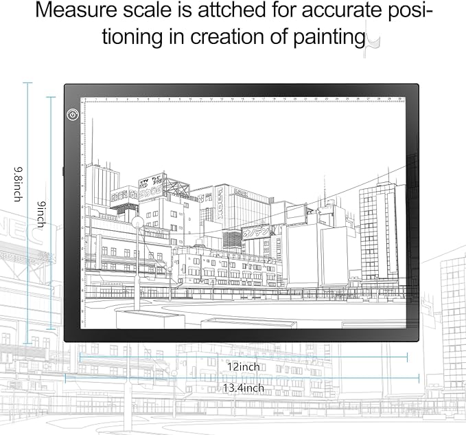 - Ultra Thin and Portable - Thickness 8mm; Work Surface 12 by 9 Inches, fit on A4 size sheet; Weight 0.55kg. Accurate Positioning - Measure scale is attached, benefiting the accurate positioning in drawing creation.