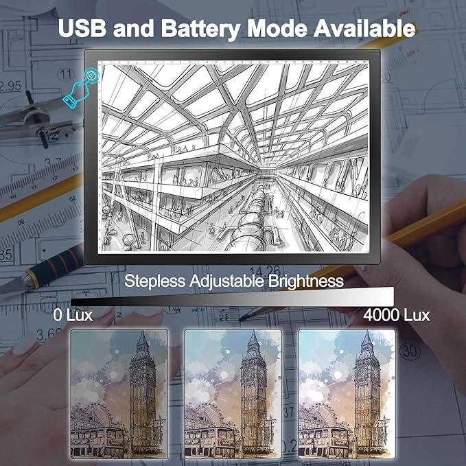- Rechargeable Battery Powered - This light tracing box let you enjoy the convenience of working wirelessly at anywhere you like with the built-in battery, works for approx 3.5 hours after fully charged. Battery and USB mode are both available.