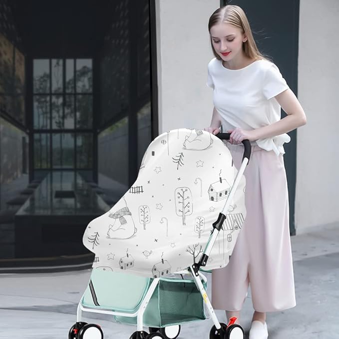 Yoofoss Nursing Cover Breastfeeding Scarf - Baby Car Seat Covers, Infant Stroller Cover, Strechy Carseat Canopy for Boys and Girls (Bear)