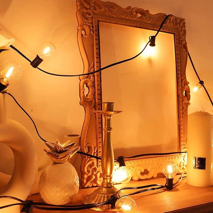 - 【End to End Connectable】G40 25 foot patio string lights has 25 sockets spaced 12 inches apart, 6" lead with male plug, and 6" tail with female connector, easily connect up to 28 strands end-to-end to cover larger areas—great for weddings, parties, and outdoor events.