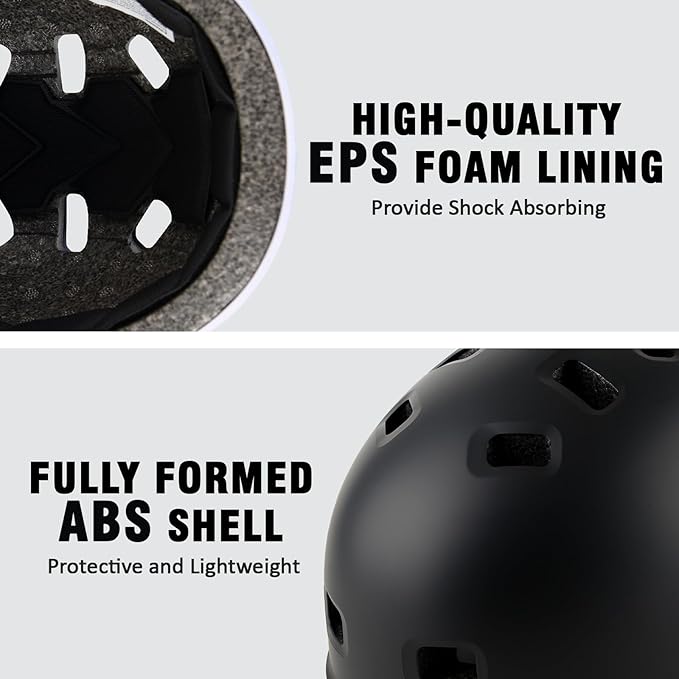 - The kids bicycle helmet is made of rugged ABS shell and shock-absorbing EPS foam to provide comprehensive protection.