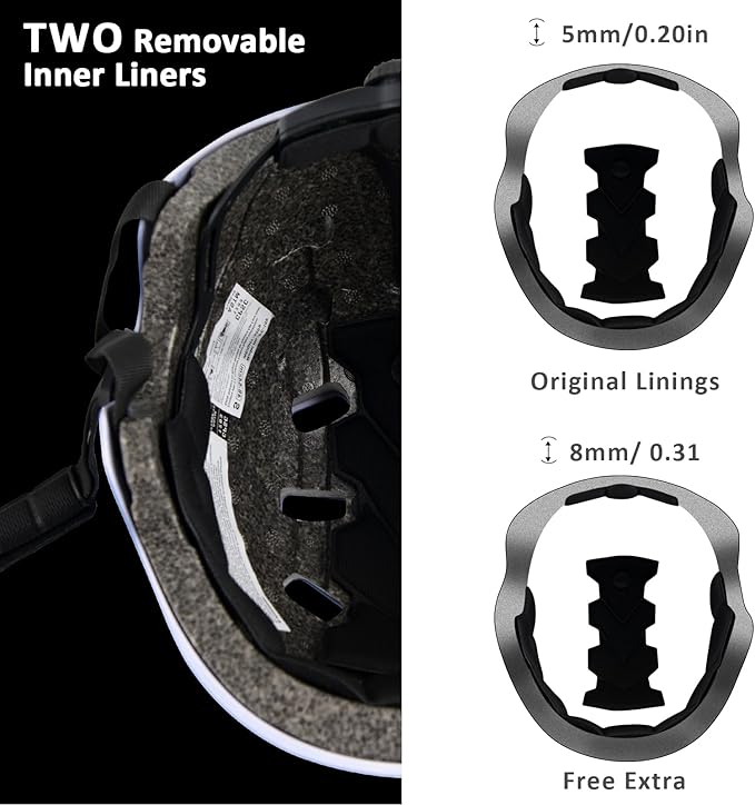 - The child helmet design with 12 air vents keep user cool and comfortable. Equipped with 2 set of removable liners (5mm, 8mm), easy to wash sweat away.