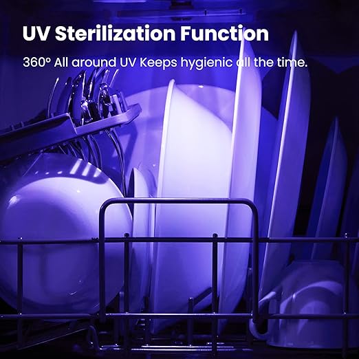 - [ 5+2 Program Options ]: 5 Washing programs: NORMAL, RAPID, HYGIENE, FRUIT, GLASS, which meets all your daily cleaning needs. Equipped with 2 enhanced functions: AUTO-OPEN provides effective drying performance; UV Hygiene Program ensures there will be no food particles left behind.