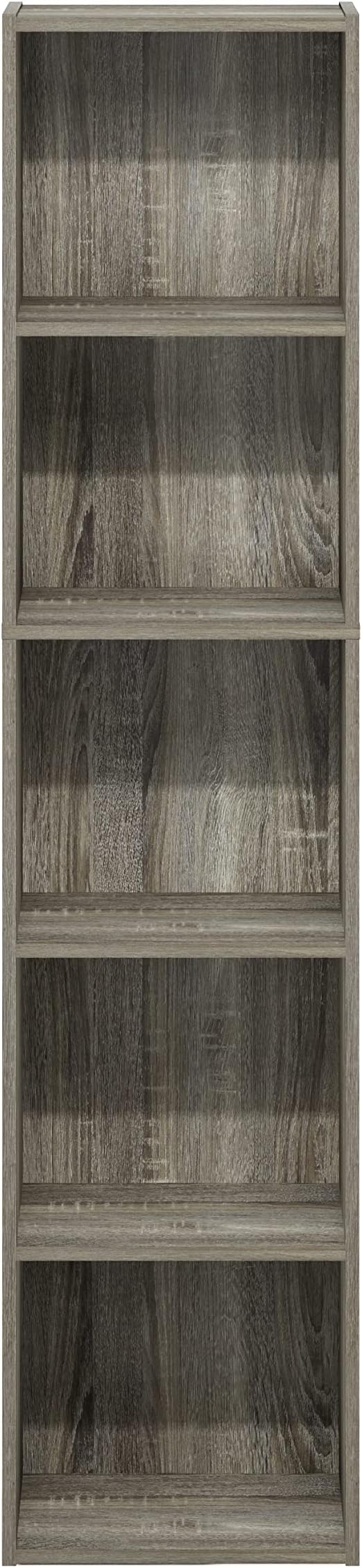 Furinno Luder Bookcase / Book / Storage, 5-Tier Cube, French Oak