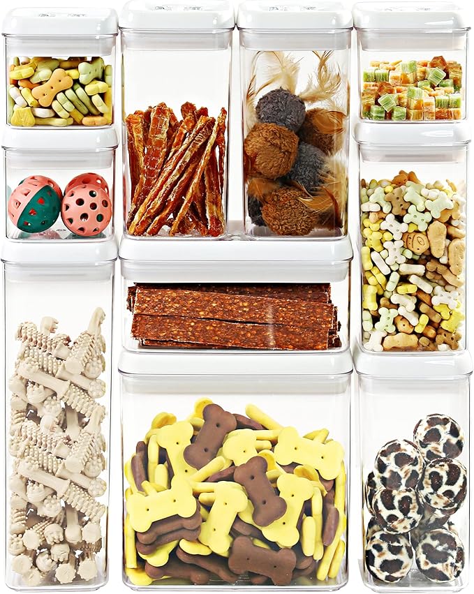 - 3 PIECES RECTANGULAR BREAKFAST GRANOLA SET: Set includes 3 x 4" RECTANGULAR-M sized containers (1.9qt / 1.8L), size is perfectly calibrated to store common household staples including oat, cereal, candy, coffee, bean, sugar, snack, baking ingredient, pasta, pet food treats for dog & cat, also great for makeup, bathroom, office, desk, fridge organization, or craft storage.