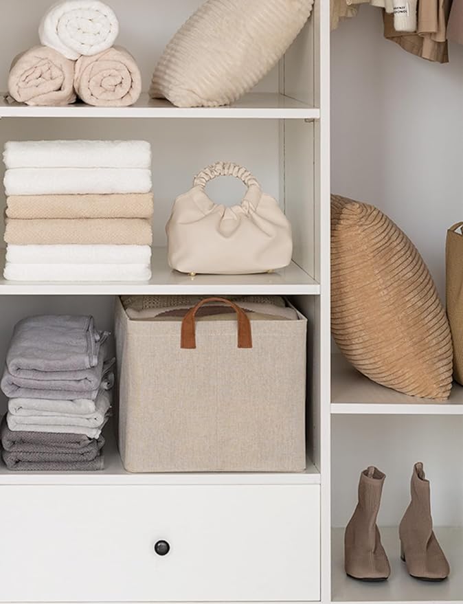 - Use Across Scenario: These shelf storage bins are sturdy enough to be used as clothing containers, helping you effectively organize your bedroom, living room, laundry room, or dorm room with simple and elegant color blocking designs to make your room tidier and prettier.