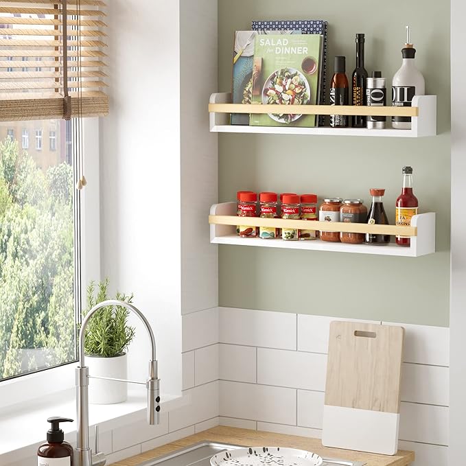 - Safe and Functional: Built with a safety rail, these shelves securely display books, frames, and small decor items.
