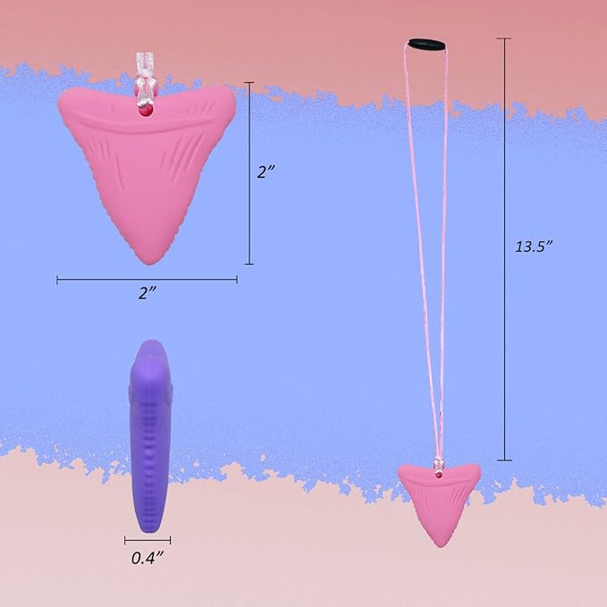 - ★ PATENTED AND STYLISH DESIGN - Adjustable string & breakaway clasps make the autism chew toys sensory safe to use for most children. Shark tooth patented design chewing necklace sensory chew toys easy to grab, not stuck in throat.