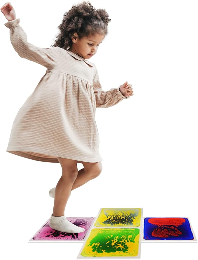 - Colorful Sensory Tiles: Bright cosmic liquid colors change that move with every step, jump, dance, or hop ;keep the mind active, prevent getting bored and help to concentrate.