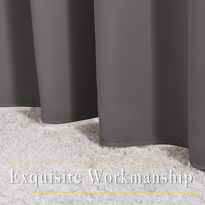 - Amazing Material: Super heavy and soft Blackout Curtain Panels are very upmarket. Besides, 85%-99% light blocking, thermal insulated, soundproof, and energy-efficient. Thread trimmed and wrinkle-free, both sides are the same color.