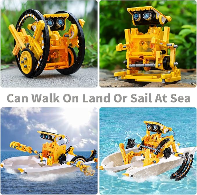 - Powered by Solar - This stem robot building kit is powered by the sun and no batteries required. The robot can crawl, roll and float under the direct sunshine which allows children to understand the environmental concept of renewable technologies and renewable resources.gifts for 8 9 10 11 12 year old boys.toys for ages 8-13.boys toys age 8-10
