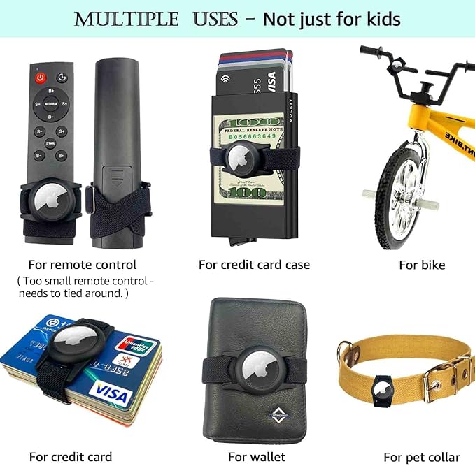 - π For Items: ThingsBag pulsera airtag bracelet can be strapped to many items such as wallets, cartera, credit card, bikes, bicycles, bottle, toys, remotes controls and more. Suitable for item size 4.1-13 inches.