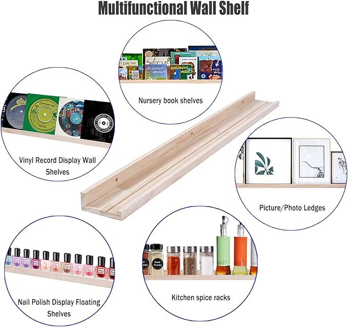 - [Multi-Function]: Get creative and find more functions beyond the picture shelf. Denver narrow storage ledge can be used as a vinyl record storage shelf, children's bookshelf, collectibles display shelves, etc.