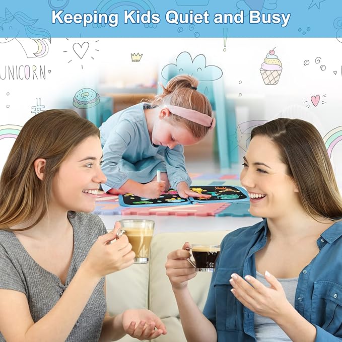 - 🎨Childrens Drawing Magic Book--Kids Erasable Doodle Book Set is 8.6*8.2*0.7 in. Easy to store and carry, perfect for children's school bags. Keep your kids quiet and busy while you travel and enjoy your trip to the fullest!