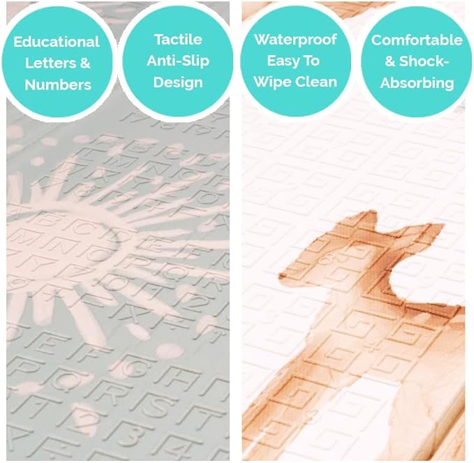- Easy Cleanup- The soft foam mat is waterproof for easy clean up and prevents absorption and stains. Designed by parents for parents, you’ll love its convenience as much as your baby loves playing on it