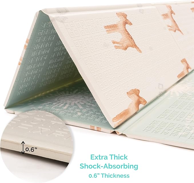 - Space To Play - This extra large baby play mat clocks in at 77 inches by 70 inches with a thick 0.6 in. padding, giving your little one plenty of space to crawl, play, or take a nap after they’re tuckered out
