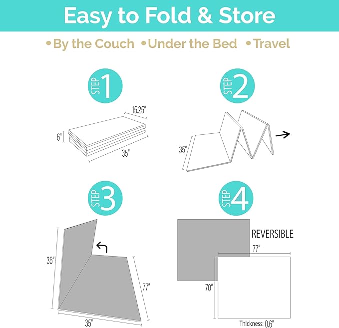 - Take It Anywhere - The accordion folding design makes for easy storage, so you can pack it up in the car and take this tummy time mat to the beach, park or anywhere that you like to relax with your baby