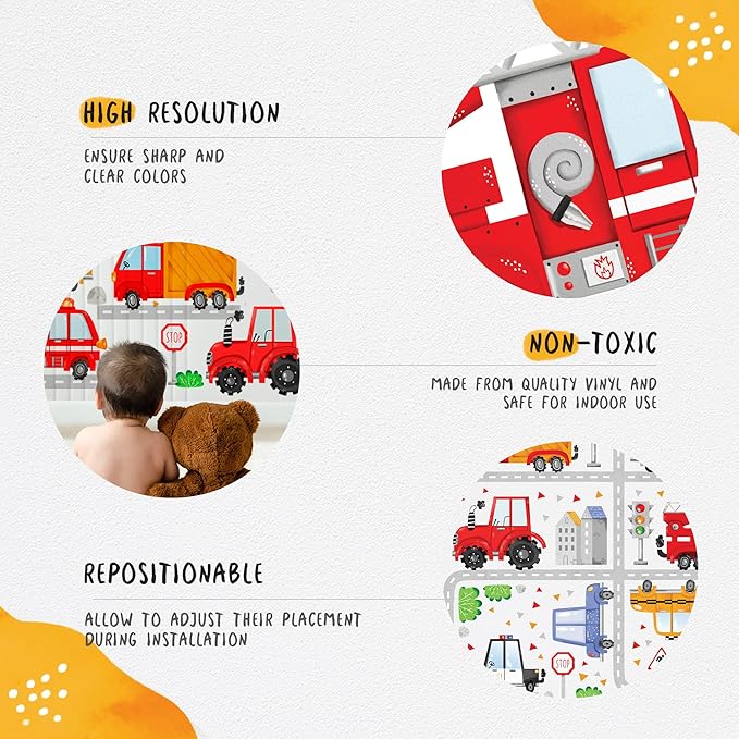 - ⭐ Perfect for Various Rooms: Car wall decals for children wall is ideal for kids' rooms, nurseries, playrooms, living rooms, baby rooms and bathrooms.