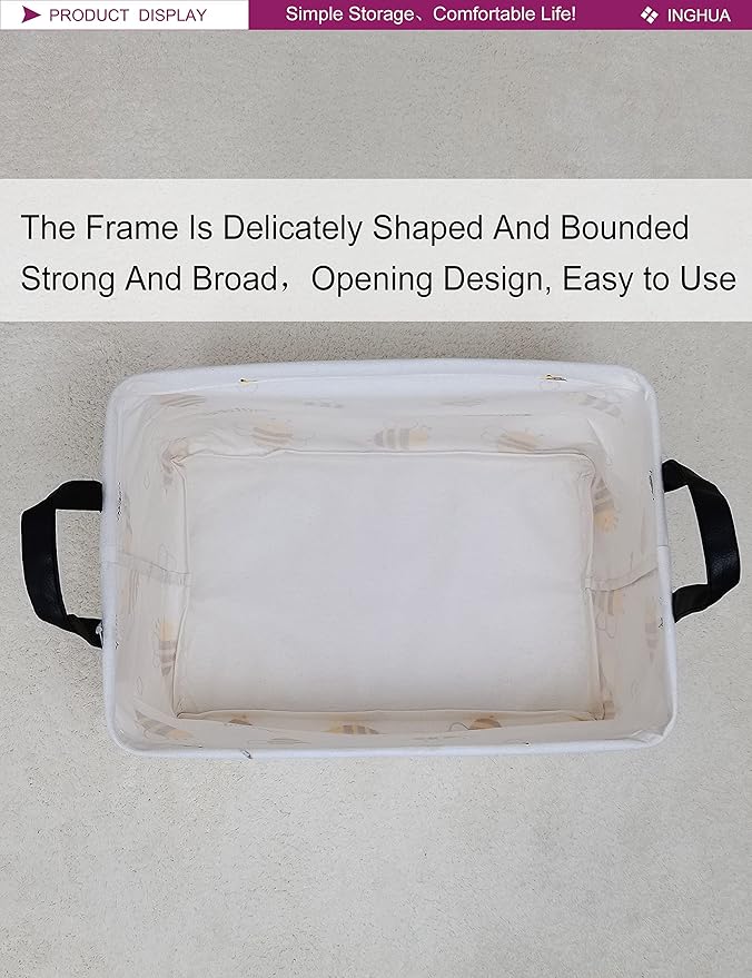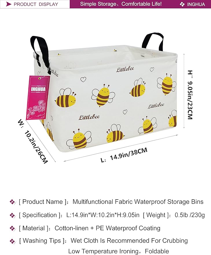 Rectangular Storage Basket Fabric Organizer Bin for Toys,Books,Clothes,Gifts,Pets-Perfect for Home,Office,Nursery,Dorm,Shelf(Rec-Bee )