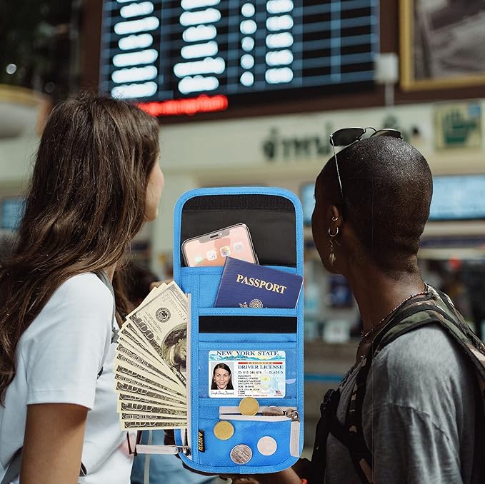 - RFID Blocking: This neck travel pouch with RFID Blocking material can perfectly protect your important personal data such as smart cards, credit cards, driver's license, debit cards and other RFID cards.Stay away from digital theft during business trips, travels and excursions to make the journey safer and more comfortable