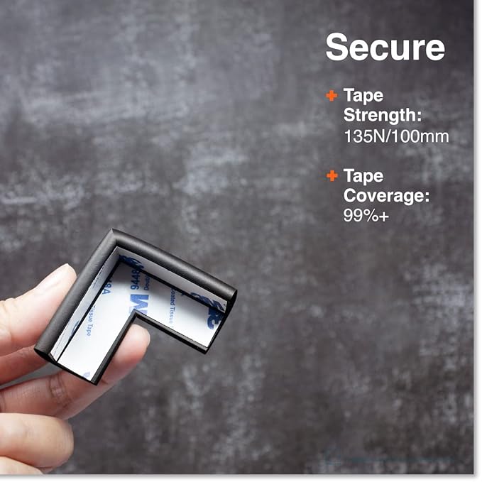 - SECURE ADHESION: Includes authentic easy-to-peel 3M double-sided tape (36 feet of tape for the edge guard, not pre-taped), with 8 corner guards pre-taped. Onyx black color goes well with black or dark color furniture, such as tables, chairs, chests, shelves, stairs and desks. All text and photos/images in this product listing are copyrighted materials. Copyright: 2012 Mayapple Baby LLC, Brooklyn NY, USA. Designed in USA.