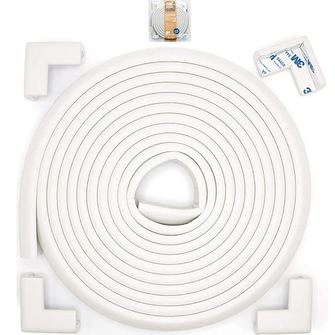 - SECURE ADHESION: Includes authentic easy-to-peel 3M double-sided tape (30 feet of tape for the edge guard, not pre-taped), with 4 corner guards pre-taped. Oyster white goes well with maple, birch, alder, or light-colored furniture, such as beige, white, off-white and gray tables, chairs, chests, shelves, stairs and desks. All text and photos/images in this product listing are copyrighted materials. Copyright: 2012 Mayapple Baby LLC, Brooklyn NY, USA. Designed in USA.