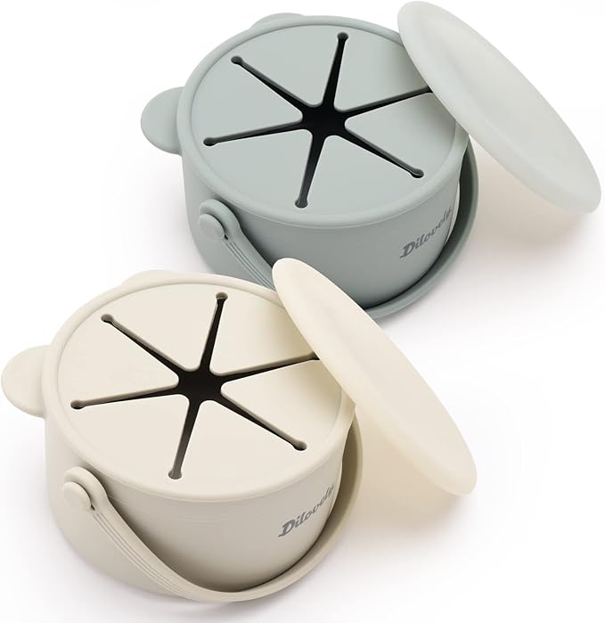 - 👶Safe for Baby: The Dilovely baby snack containers is made out of 100% food grade silicone, which is definitely safe to store food, snack or even to chew. This baby snack cups do not contain any BPA, Lead, and Phthalate.