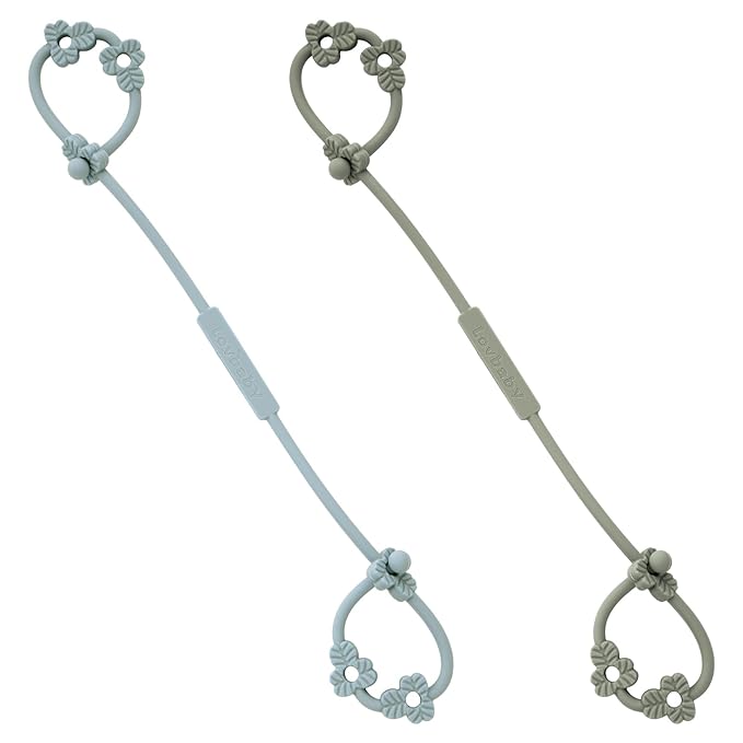 Toy Safety Straps, Silicone Pacifier Clips, Adjustable Stretchable Sippy Cup Straps for Strollers, High Chair, Cribs, Hanging Baskets, Car Seat, Shopping Trolley, 2 Pack (Ether+Sage)