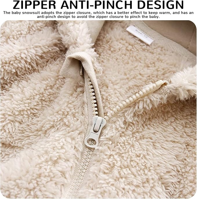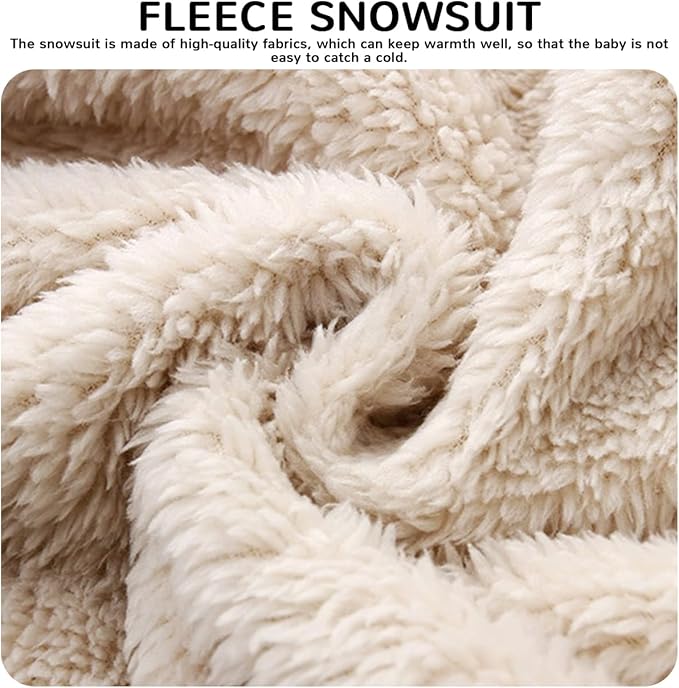 • ❤♥Material: This baby snow suit made of high quality polyester fiber, double lining, fine polyester fiber cares for baby's delicate skin. The newborn winter outfit hoodie whole body jumpsuit design, keeps the baby's head and ears inside and warm when outing. The toddler boys & girls snow suit accompanies the baby through the cold winter.