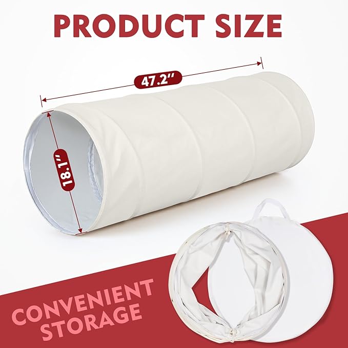 - 【Easy to Assemble】The unique design of this neutral color Crawling Tunnel for kids allows you to quickly open when you need to use our tunnels for babies without wasting a moment of happiness. Based on steel-spring construction, toddlers tunnel folds flat for convenient storage when the baby tent is not in use, and it is easy to carry in a bag, making it the first choice for outdoor activities.