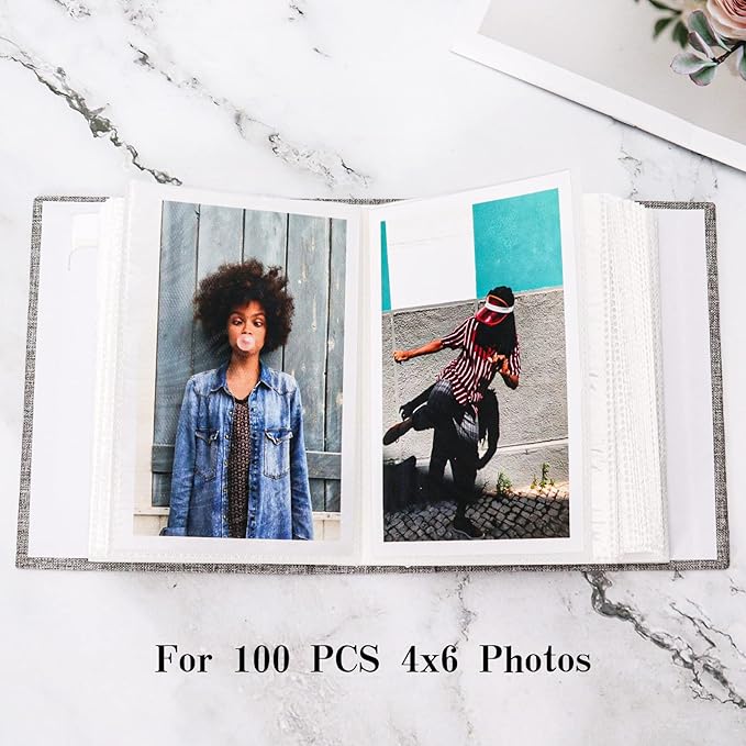 - Size & Capacity: The size of photo albums is 6.7x5.3x2.2 inches. It can hold 4x6 inch photos horizontally with 100 pages and each page holds 1 photo. Photos fit snugly in the pockets and are not easy to slip out