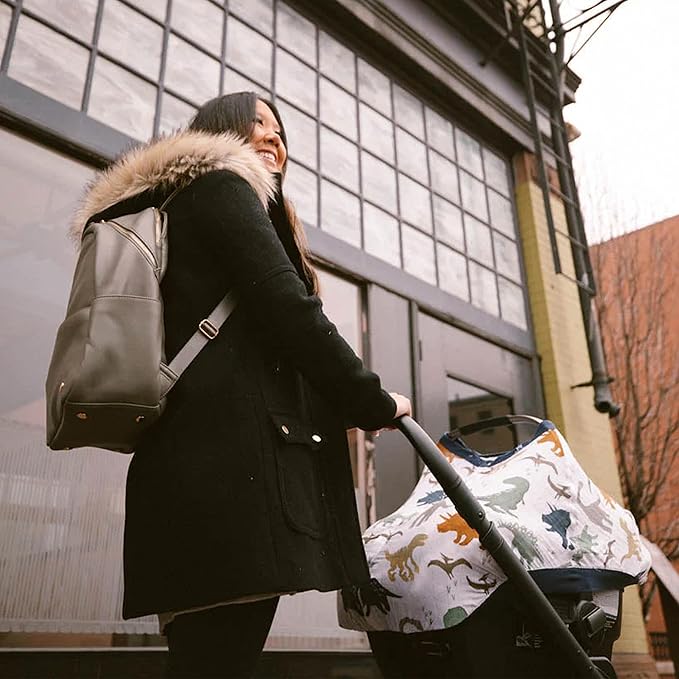 Little Unicorn Breathable Car Seat Canopy | Magnetic Closure Cover & Universal Fit | Protection & Privacy for Baby (Dino Friends)