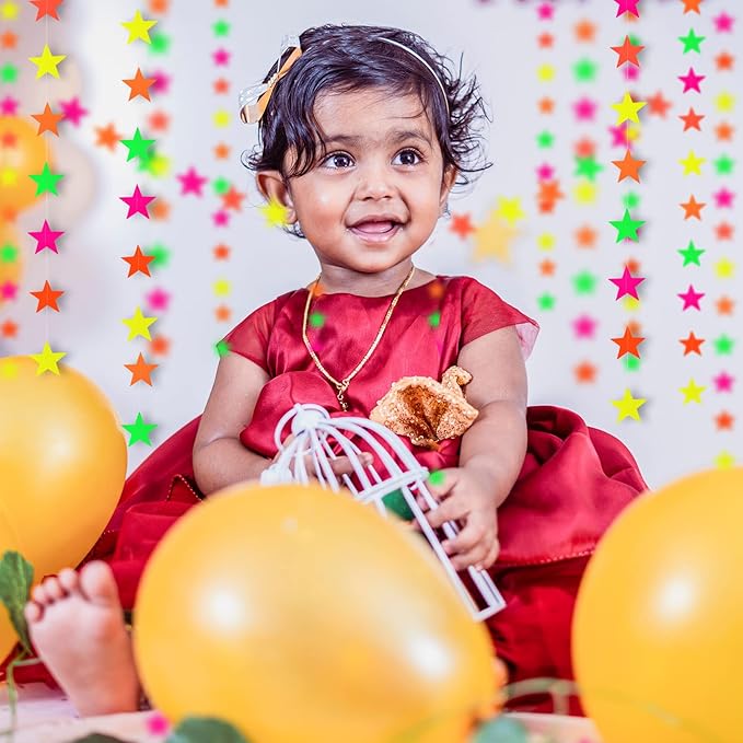 - 【All Occasions】the luminous crepe paper Star Garland are suitable for black light party decorations,fluorescent party,birthday party holiday carnival, graduation, anniversary, wedding, fetes, festival celebrations, baby showers, school activities. Especially Perfect for Neon Glow Party Supplies.