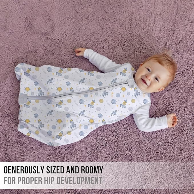 - 【BABY FRIENDLY, PROVIDES SAFE & SECURE SLUMBER】— Rest easy while your child is sleeping soundly without any loose blankets that could tangle or twist. Our baby sleep sack 12-18 months provide your child a safe & comfortable sleeping experience. The safety tab guarding your baby's tender neck & chin, promotes a consistently safe & cozy fit. Our sleep sack newborn has a bottom zipper cover that deters your baby's hands from unzipping the blanket, ensuring a safe & uninterrupted slumber.