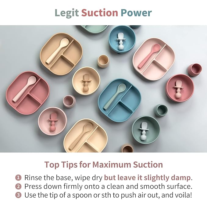 - Strong Suction Power - Our Plate and Bowl stick firmly to smooth surfaces, thanks to a larger Suction Base that creates the ultimate hold. Plus, our divided plate features an impressive height of 1.9″ which is approx 35% more than average!