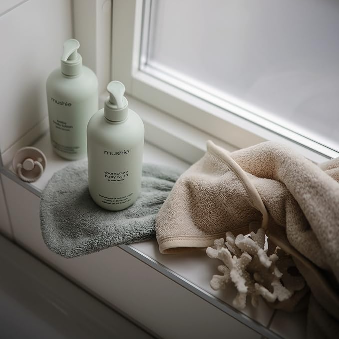 mushie Baby Bath Mitt | Organic Cotton | Pack of 2 (Moss)