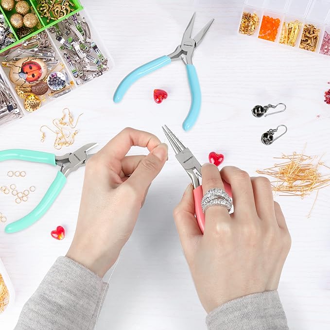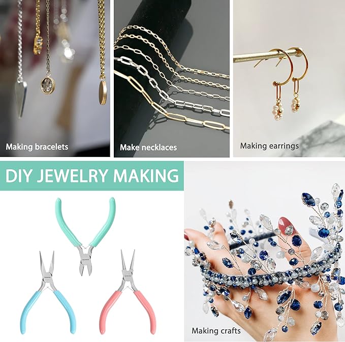 - COMPLETE JEWELRY MAKING KIT: This set of 3 jewelry pliers mini is an ideal tool for jewelry making, repair, beading, wire wrapping, and more. It's suitable for both beginners and professionals and makes a great gift for DIY enthusiasts and craft lovers. With these high-quality tools, you'll be able to create beautiful jewelry pieces with ease