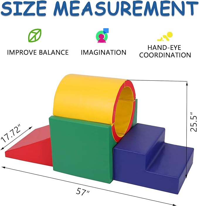 - PRACTICE SENSE OF SPACE & BALANCE: The fun of multiple combinations Blocks stimulate the child's imagination.Climbing & crawling increased control and balance of limbs.Our colorful foam play set are perfect for indoor use,like living room, amusement park, kindergarten play area, children's training institutions, shopping mall rest area